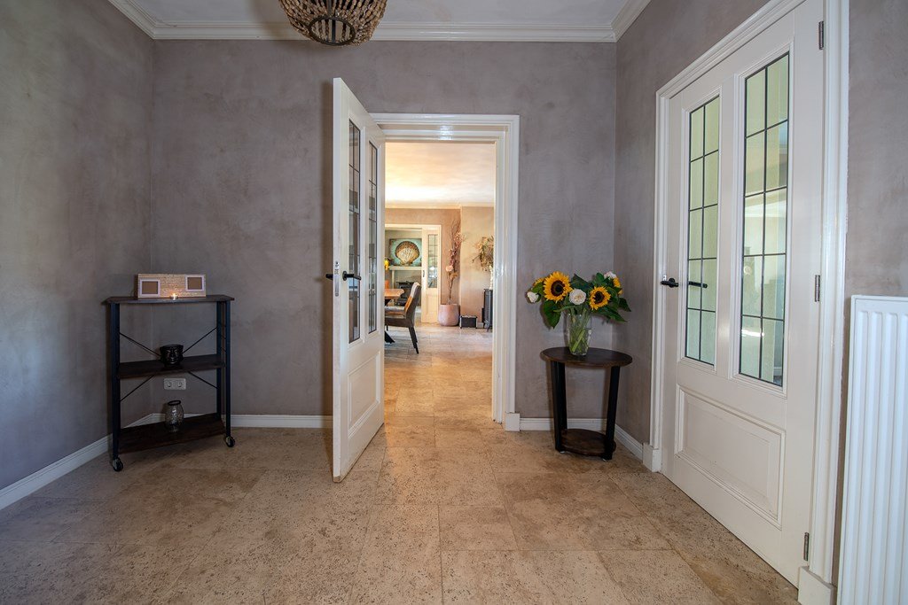 De entree leidt tevens tot een centrale hal met toegang tot de woonkeuken en living.