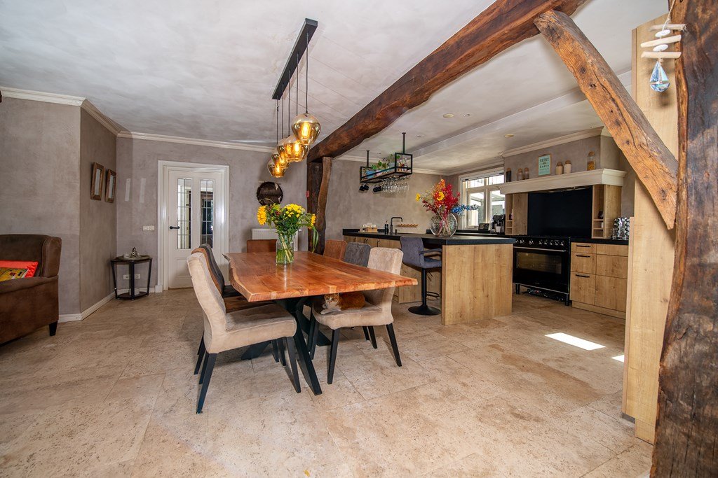 De boerderij, gebouwd in 1906, bestond oorspronkelijk uit 2 woonhuizen en is tot één luxe woonboerderij getransformeerd. Buiten het gegeven dat de woonboerderij een droomplek is om te wonen, biedt het pand ook diverse mogelijkheden voor het runnen van een bedrijf aan huis.