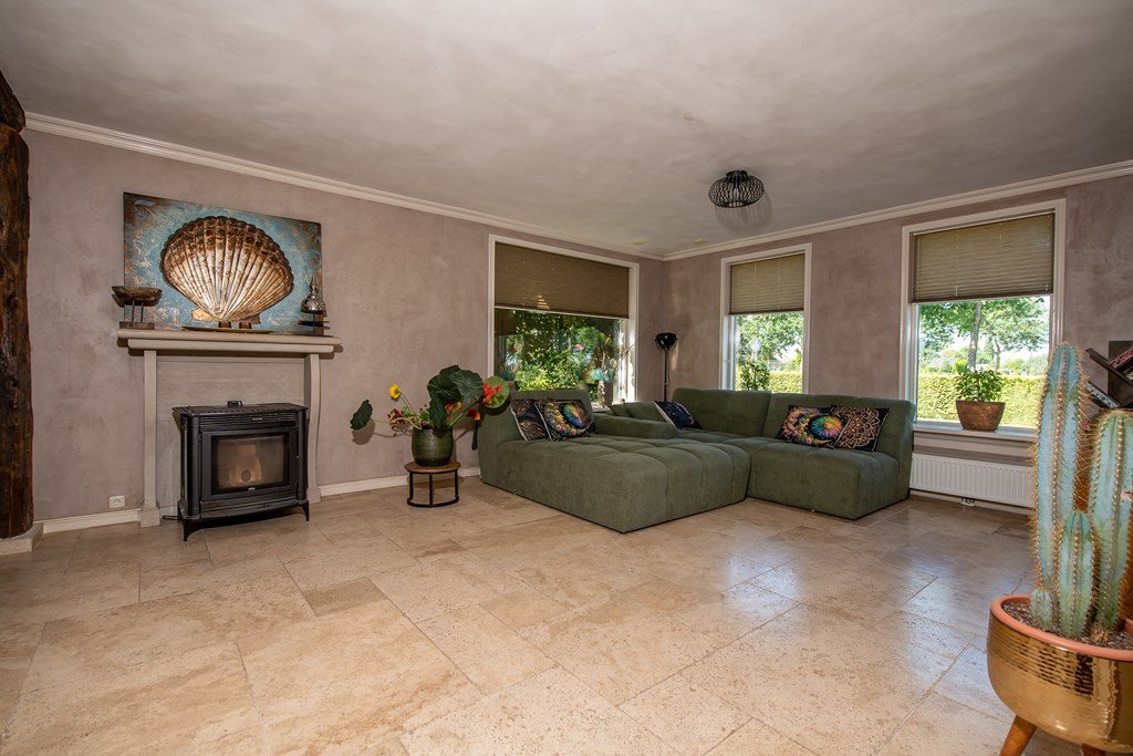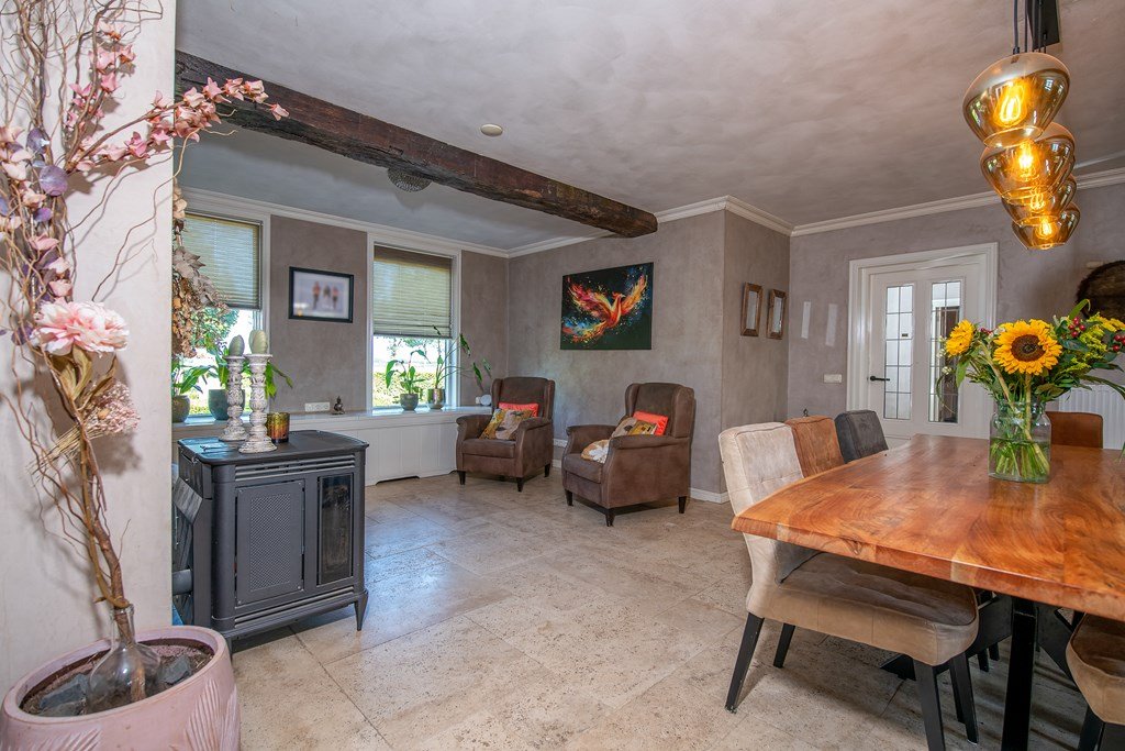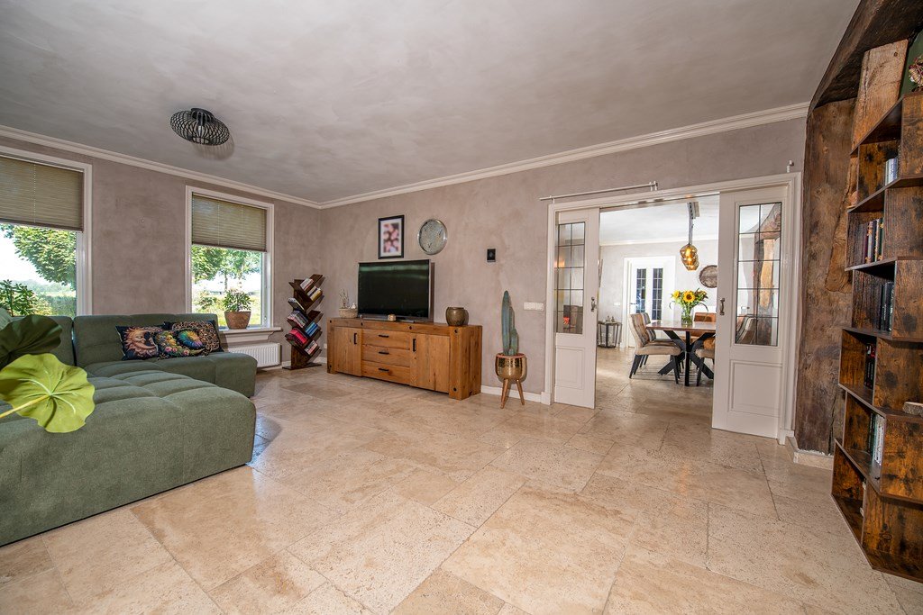 Vlak bij het centrum van het dorp, maar vrij gelegen en met een weids uitzicht zowel aan de voor- als aan de achterzijde, ligt aan de rand van het dorp deze kapitale woonboerderij met diverse opstallen, weilanden en een ruime tuin, gelegen op het zuidoosten.