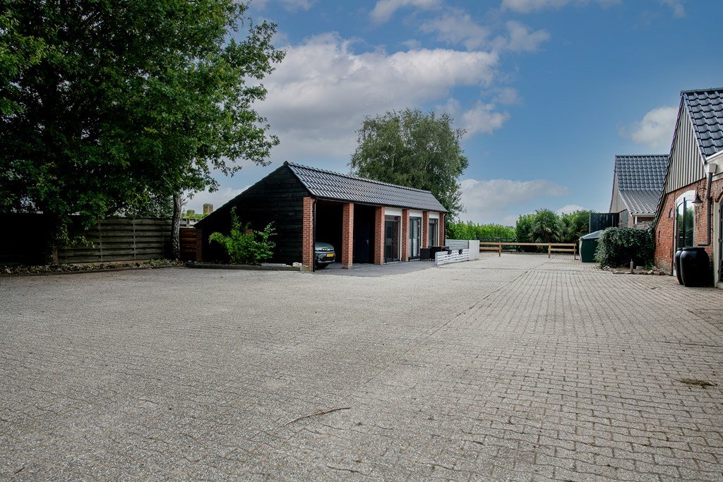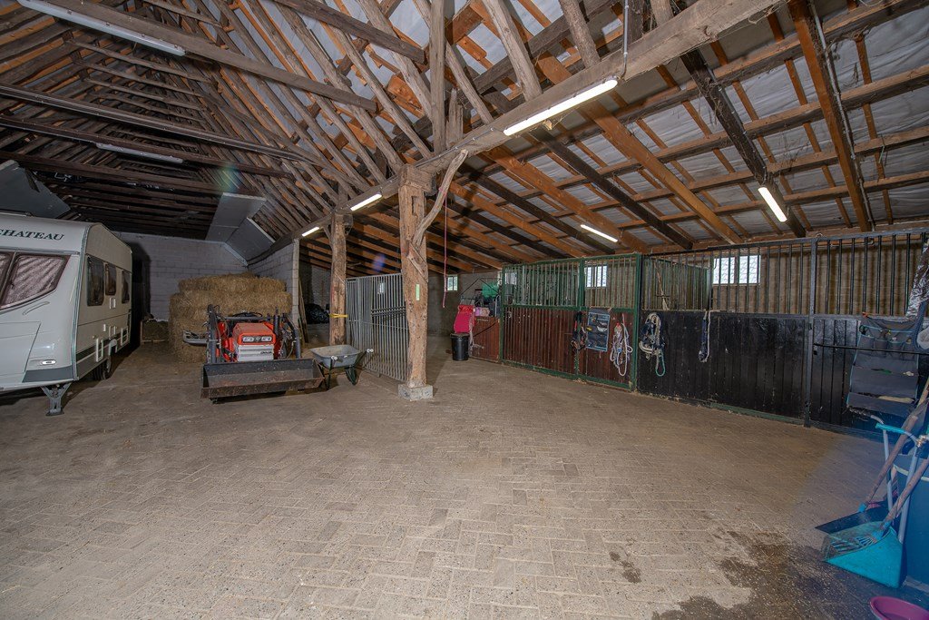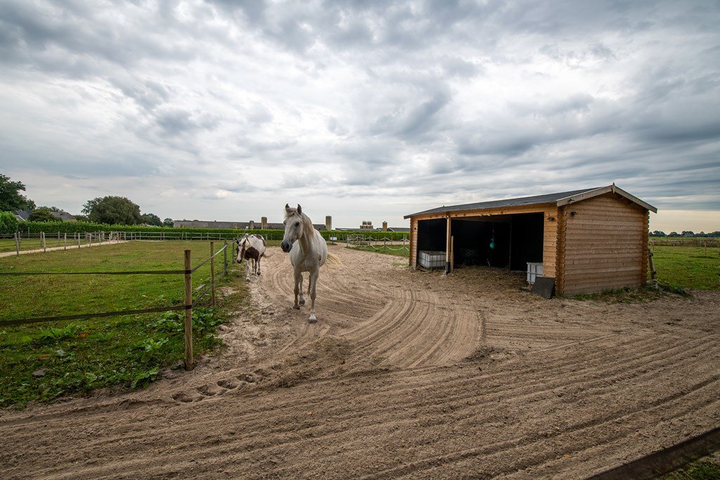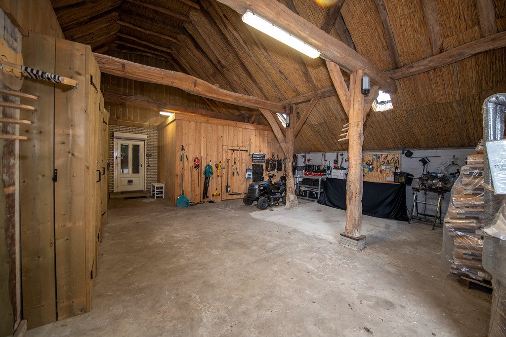 In de grote, vrijstaande schuur op het erf bevindt zich de ruimte voor (tuin)machines etc., de paardenstallen met automatische waterbak voor de paarden en een eigen elektrische boiler.