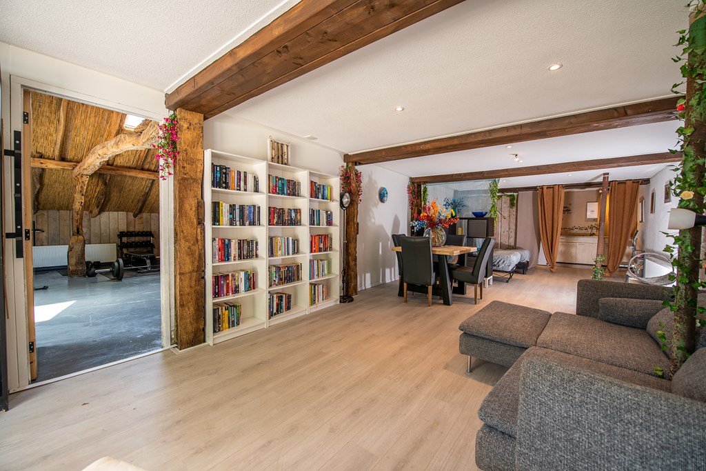 een zeer luxe woonboerderij met heerlijke separate leef- en ontspanningsruimtes, een excellente keuken, badkamers en livings, fitnessruimte, sauna, weilanden en stallen voor het houden van kleinvee en/of paarden en een ongelooflijk heerlijke tuin, waar zowel mens als dier zich op hun gemak voelen.
