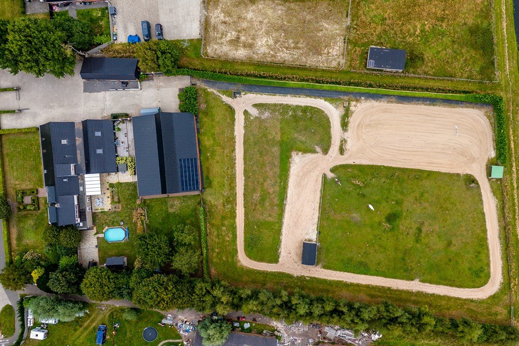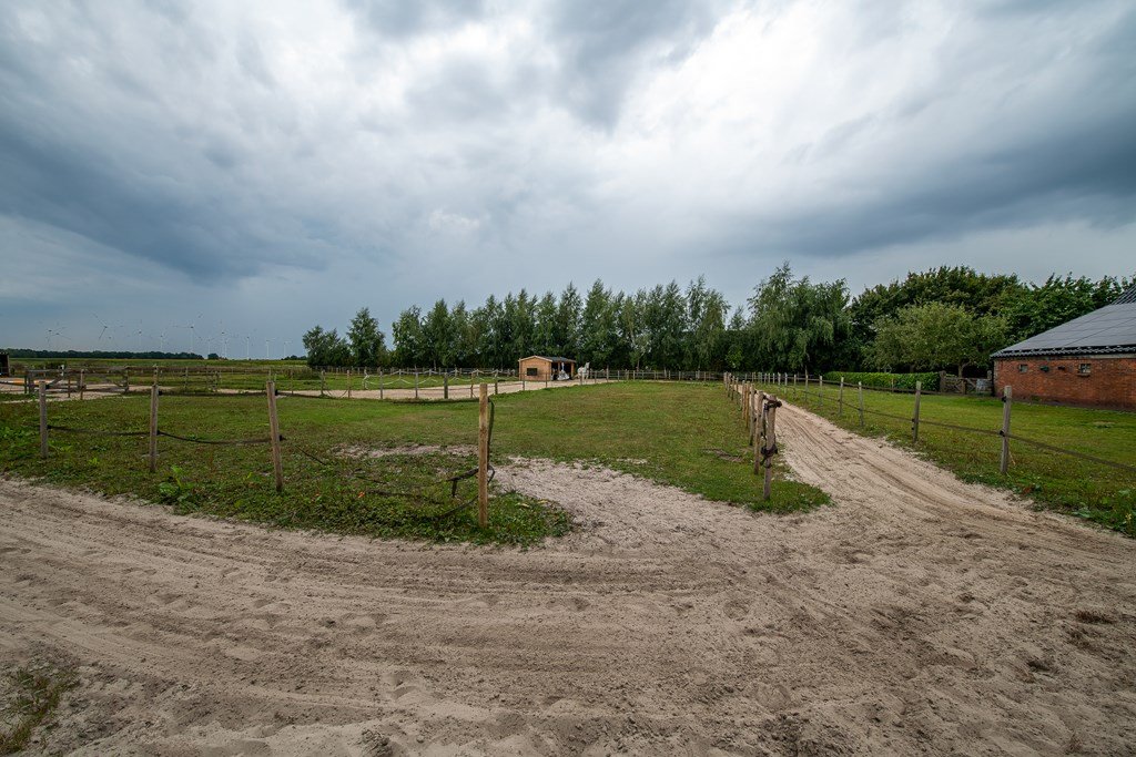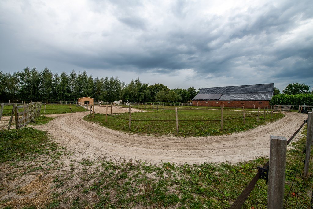 Achter de boerderij bevinden zich een rijbak, de weilanden en opstallen waar de paarden kunnen genieten van vrijheid en ruimte.