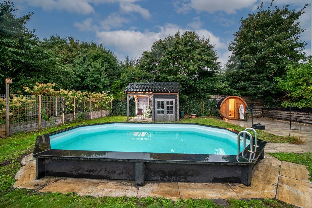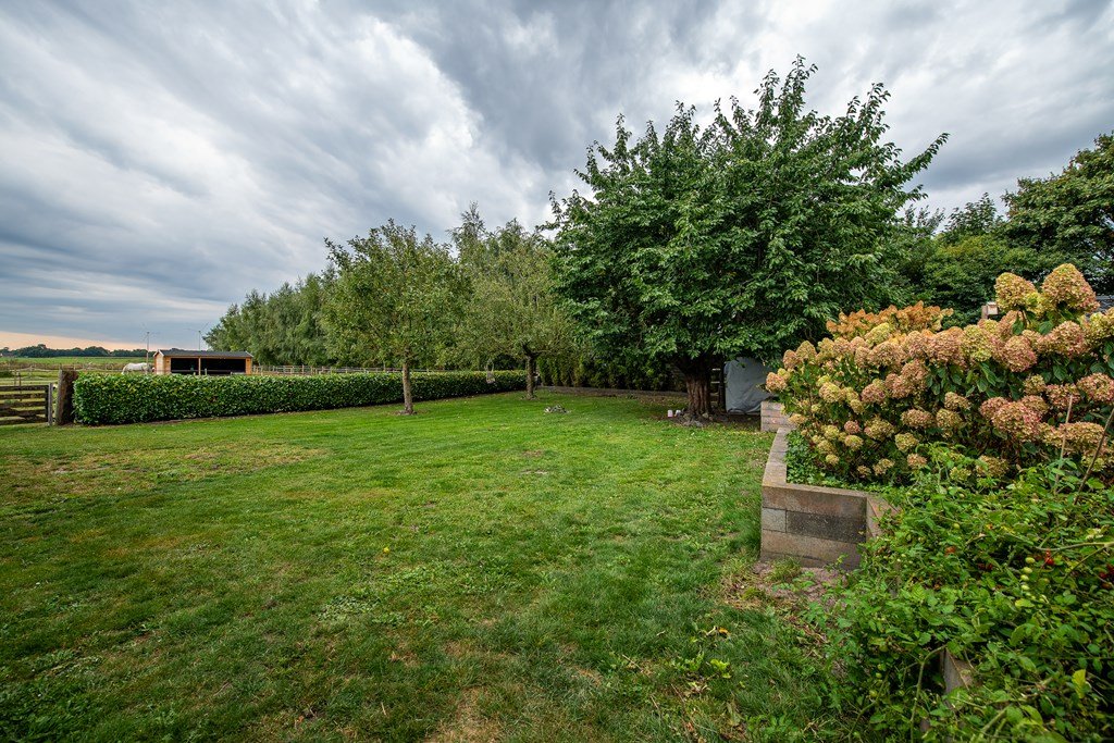 de boomgaard als heerlijke plek om over de eigen weilanden uit te kijken, de loungeplek en het tuinhuis aan het zwembad, de veranda als heerlijke plek om te genieten van een drankje of een heerlijke maaltijd en de jacuzzi met daarachter een besloten ‘vuurplaats’: alle maken deze tuin tot om grenzeloos te genieten in elk jaargetijde op een weergaloze plek in het historische gebied van het ‘Bourtanger moeras’.