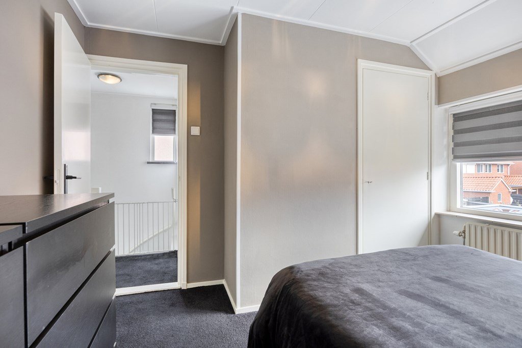 Via een luik in het plafond kan vanuit de overloop de ruime zolderverdieping bereikt worden.