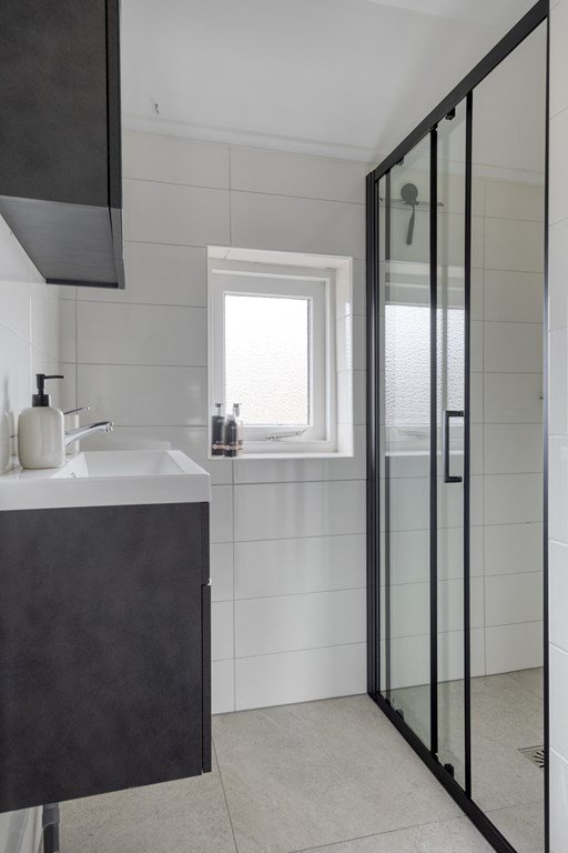 Op deze verdieping bevindt zich ook de onlangs volledig vernieuwde badkamer voorzien van een wastafelmeubel en een inloopdouche.