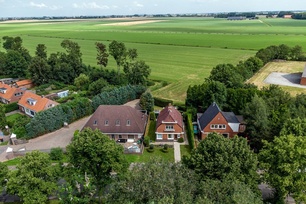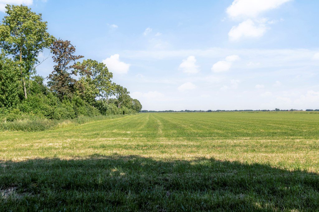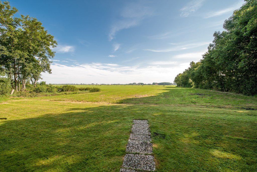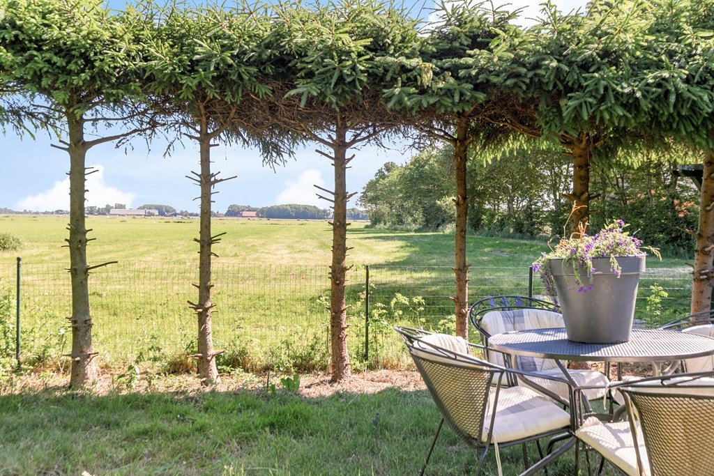 De achtertuin grenst aan de gronden van Staatsbosbeheer en biedt van daaruit een adembenemend vergezicht over de uitgestrekte landerijen van het Oldambt.