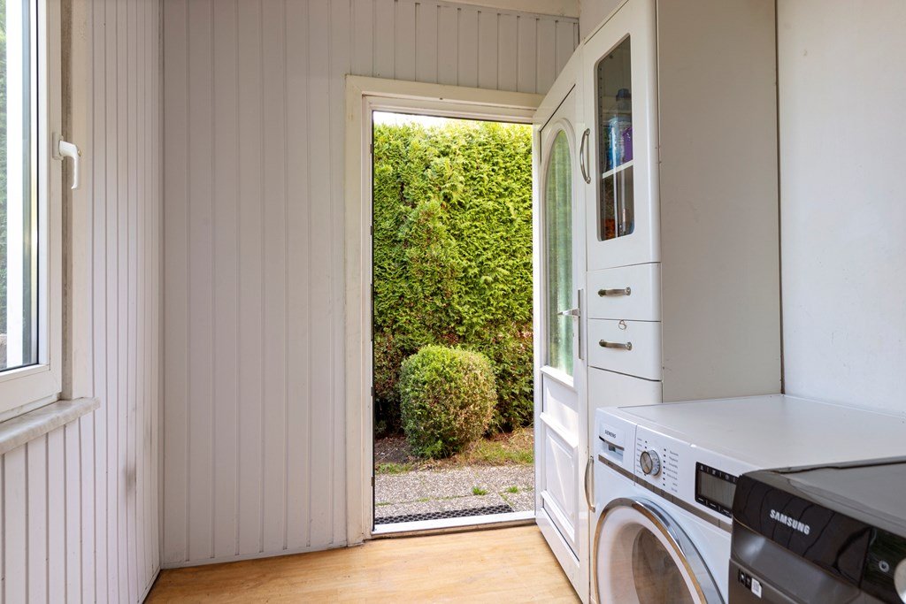 Direct aan de living gelegen bevindt zich de badkamer met inloopdouche, toilet en vaste wastafel. De living geeft uitzicht op de oude kerk van Nieuw-Beerta. Achter de keuken bevindt zich de bijkeuken met aansluiting voor wasmachine en droger. Deze bijkeuken is zowel van binnenuit als van buiten te bereiken.
