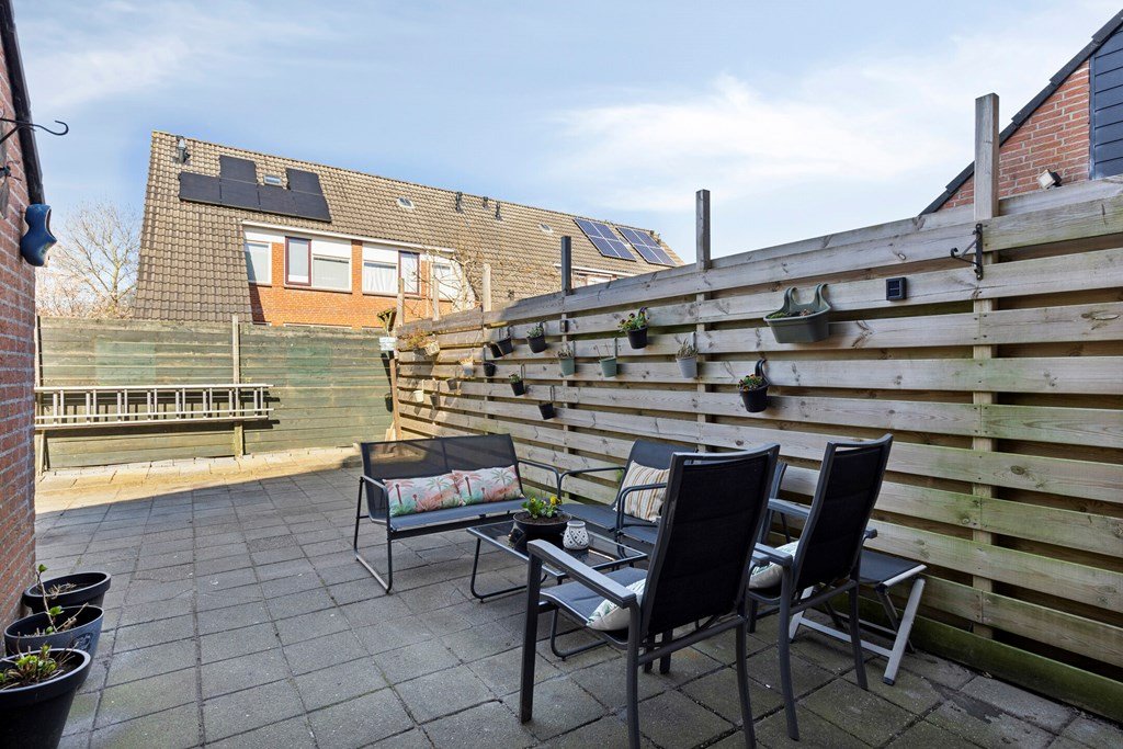 Aan de voorkant van de woning ligt een mooi onderhouden tuin. Achter de woning ligt een besloten tuin die grotendeels bestraat is. Aan de zijkant van de woning bevindt zich een overkapping