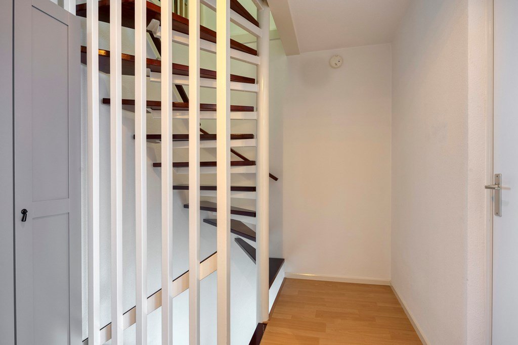 De living is verder aan alle kanten voorzien van grote raampartijen die uitzicht bieden op de achtertuin, de voortuin en de straat die uitkomt op de Waterlelie. Vanuit de living bereikt u middels een schuifpui de tuin. De gehele begane grond is voorzien van vloerverwarming.